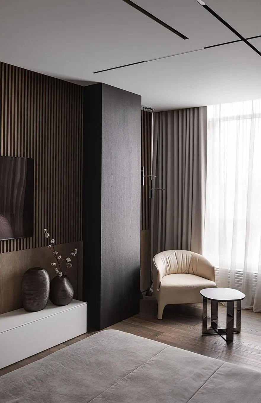 格栅元素丰富空间层次感,代表自然的木质元素为睡眠环境营造出温馨、安静的空间氛围。